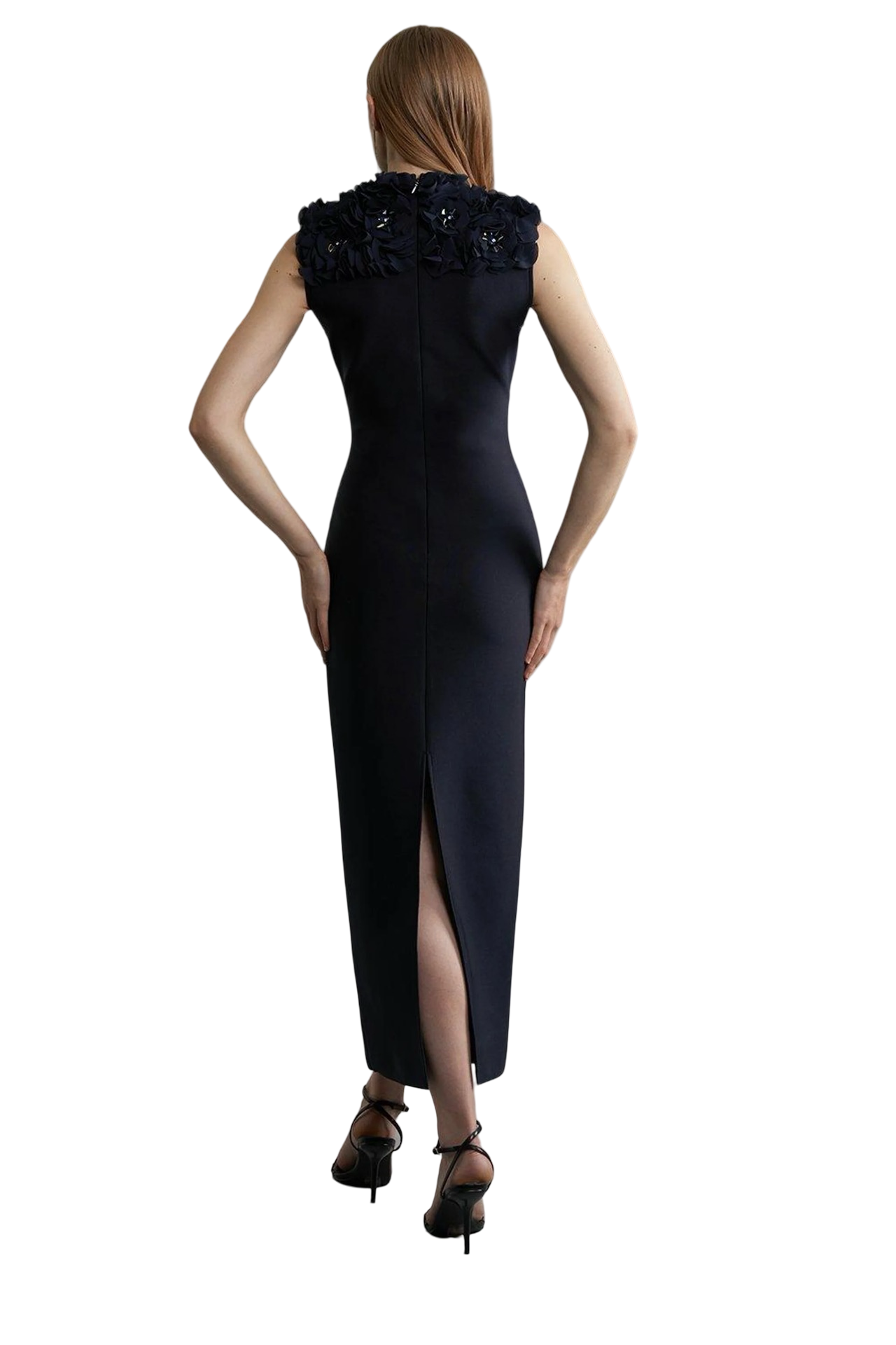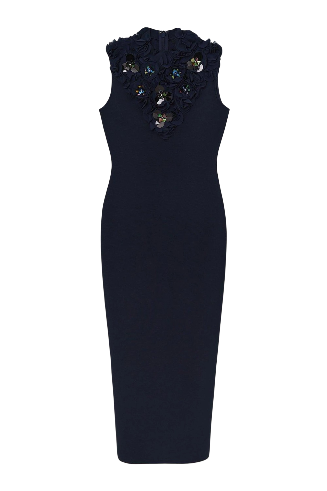 Make a statement in our midaxi dress, featuring eye-catching rosette and disc sequin embellishments. Designed to hug your figure and enhance your silhouette, this column dress can be styled with simple strappy heels for a romantic evening look.