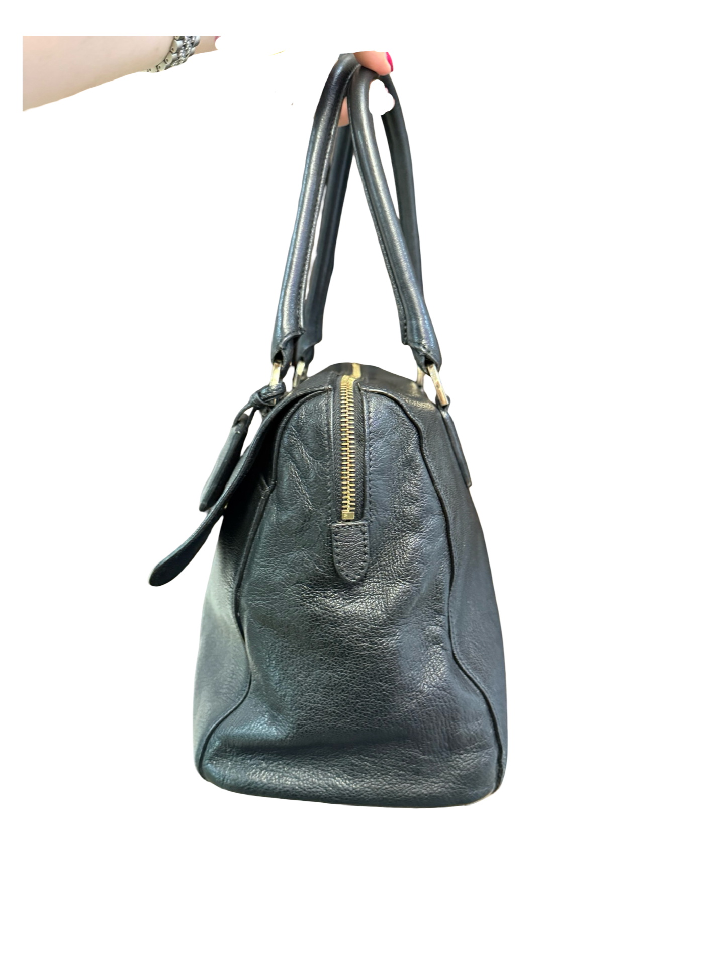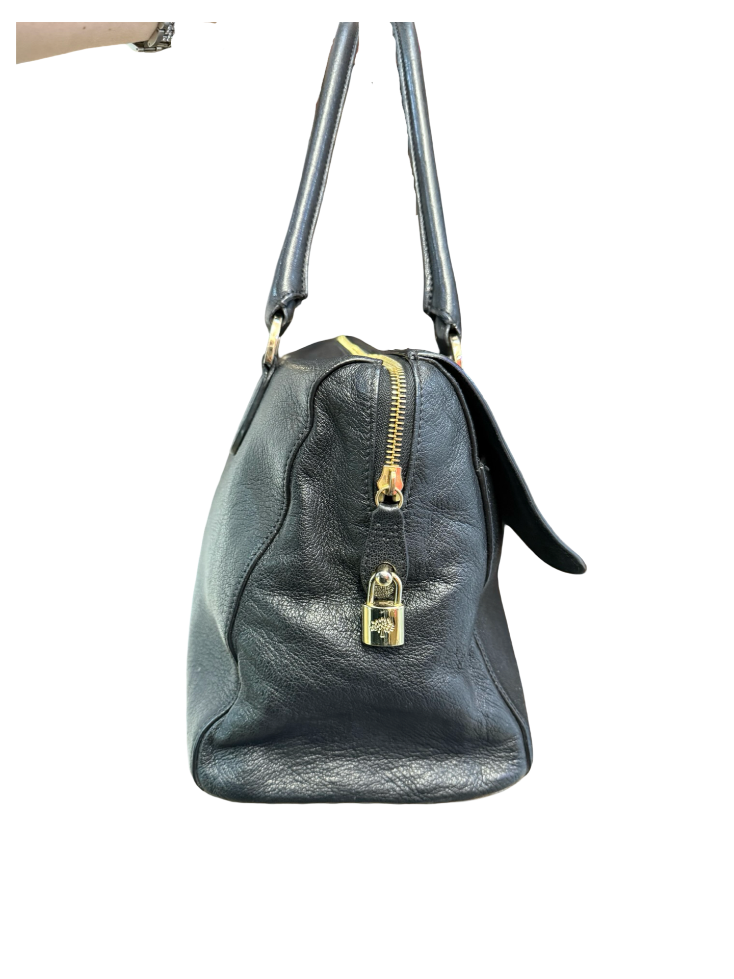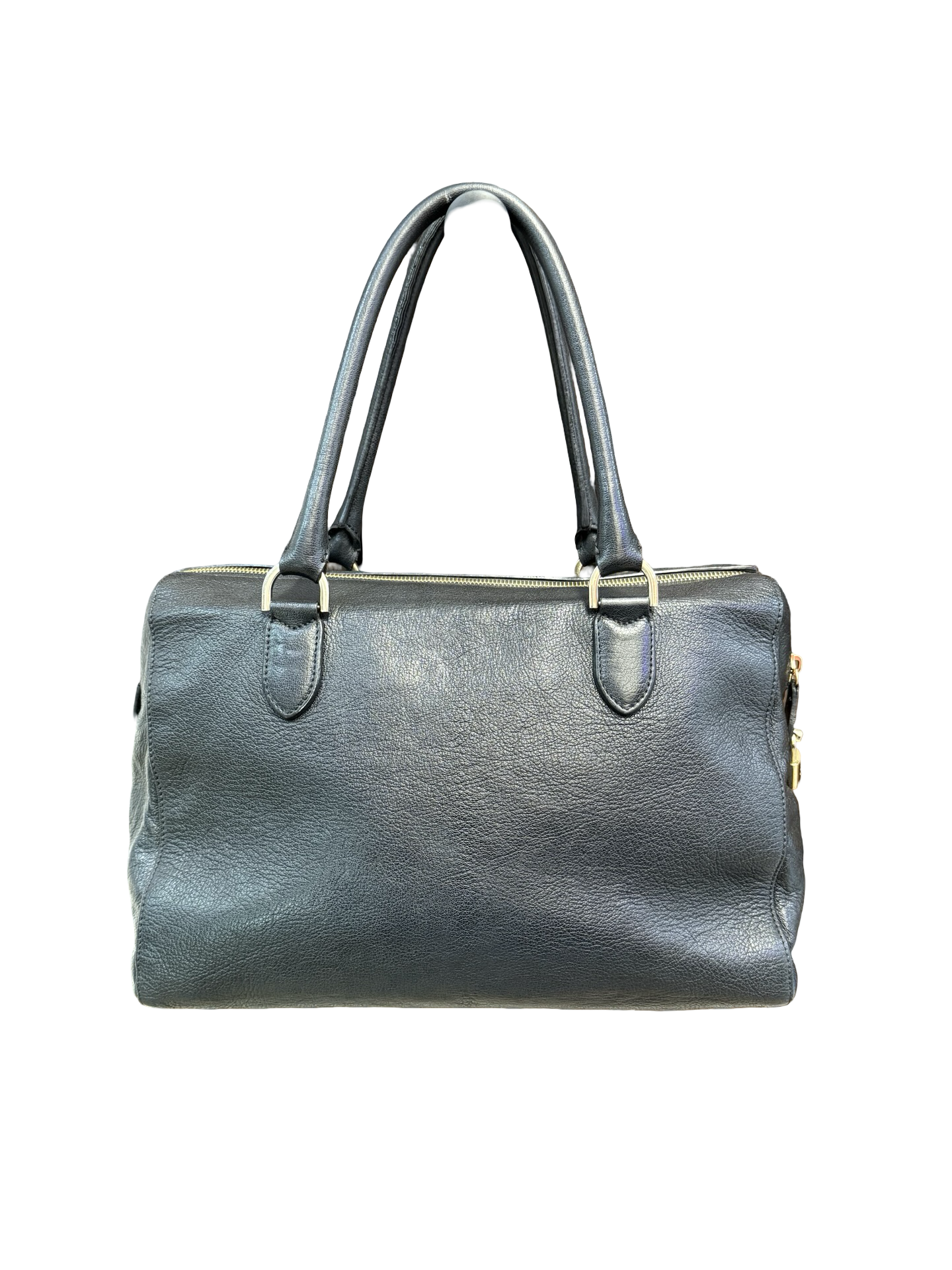 The black leather adds a sense of refined poise to the bag, making it a versatile accessory that complements a variety of outfits and styles.