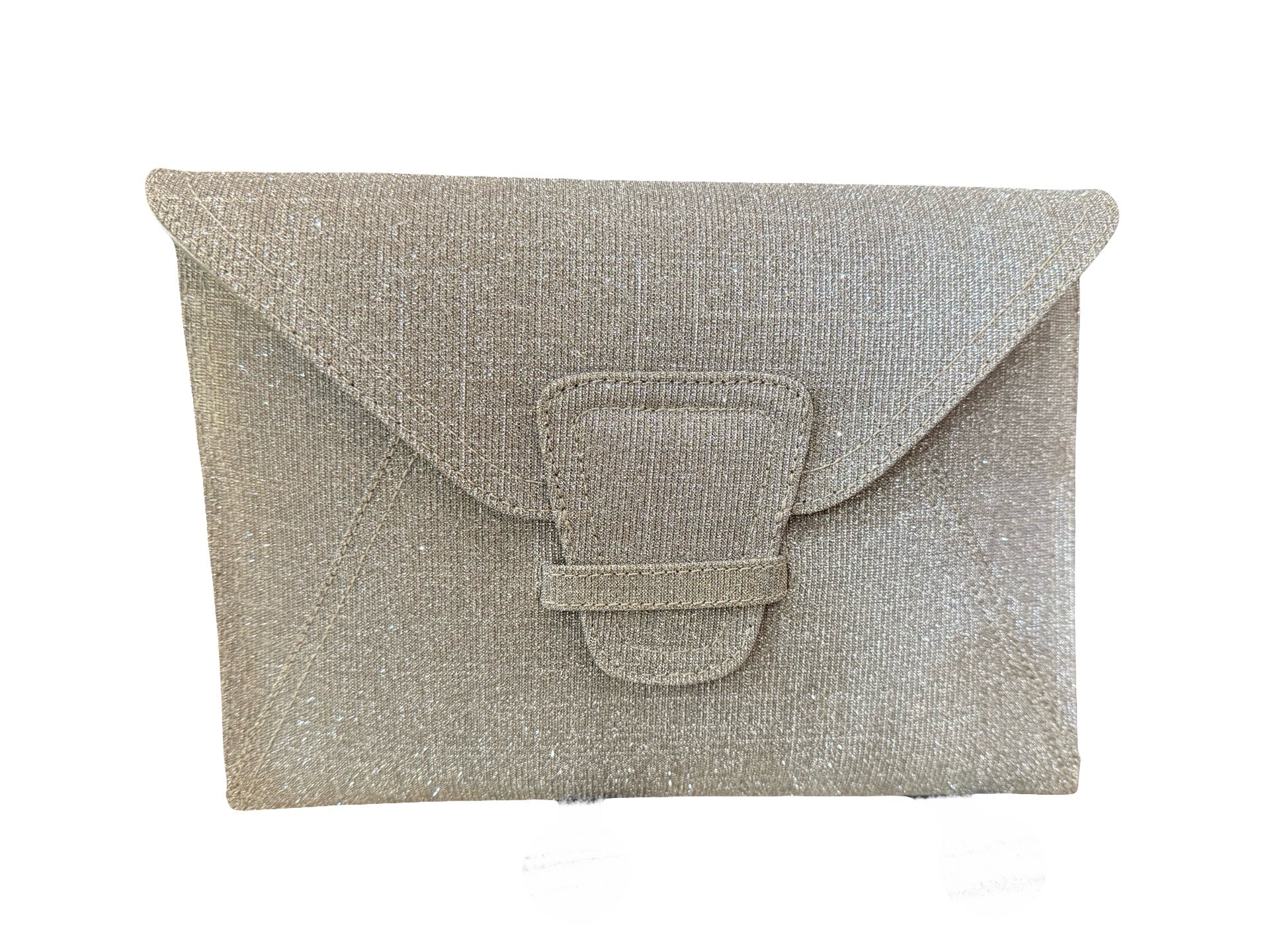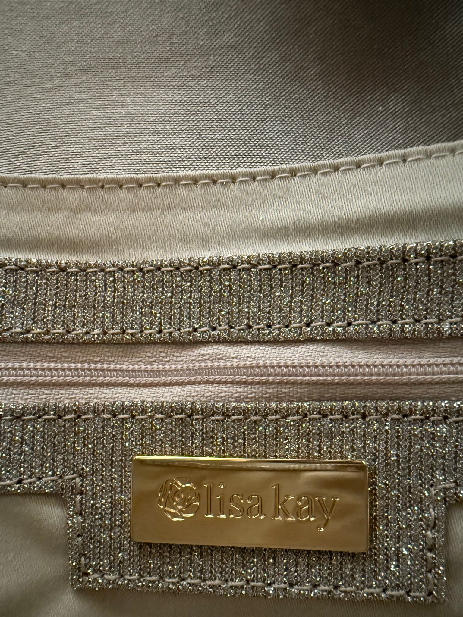 Add instant sparkle to any occasion with the Lisa Kay Liberty Clutch. Crafted in a shimmering taupe glitter finish, this elegant envelope-style bag is the perfect balance of glamour and sophistication.