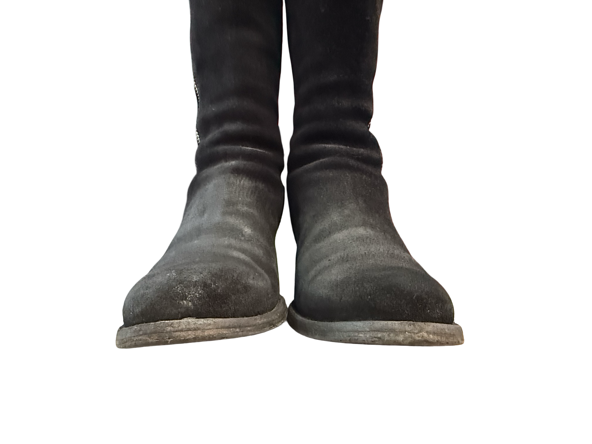 UK7.5 EU41 - In a very good used condition. There are few marks on the suede as seen in the photos but not as noticeable in real life (the camera picks them up well). The back of the heels are starting to wear down slightly and would benefit from re-heeling.